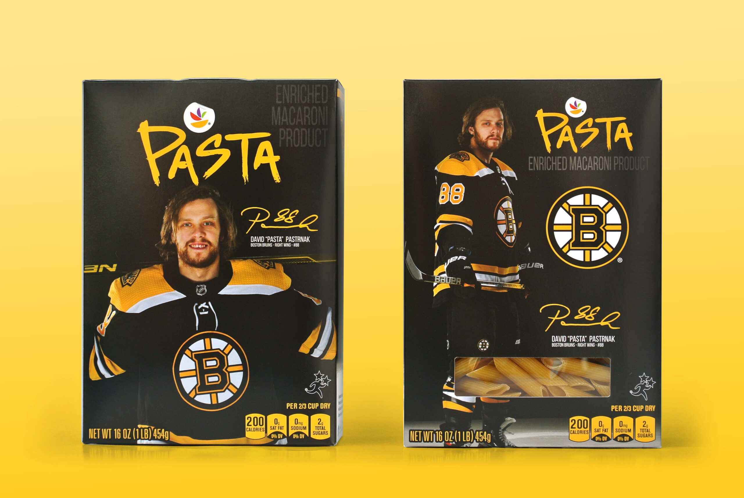 In Boston David Pastrňák is endearingly referred to as “Pasta”. Releasing his own Pasta within the Stop & Shop brand just makes sense. https://www.barstoolsports.com/blog/3387353/david-pastrnak-getting-his-own-pasta-is-the-most-on-brand-thing-ever-oh-and-its-for-a-good-cause